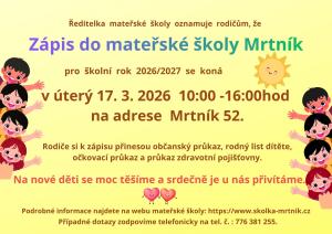 Zápis do MŠ Mrtník.