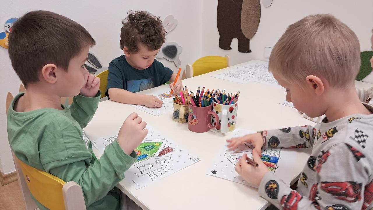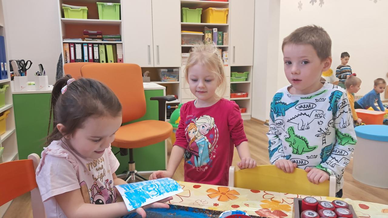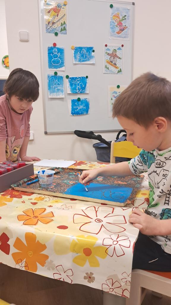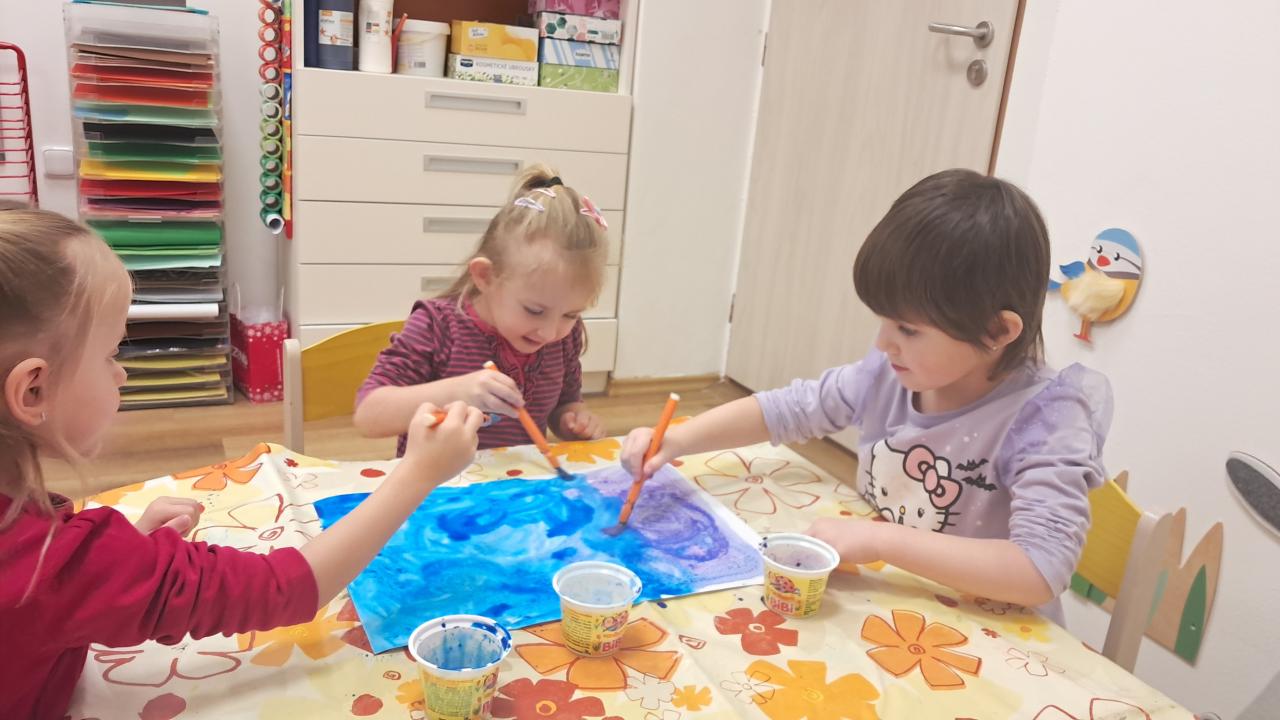 Je zima a my poznáváme zimní sporty, malujeme zimní krajinu, děláme zajímavé pokusy, zjišťujeme, co vše se dá dělat s barvami, hrajeme hry..