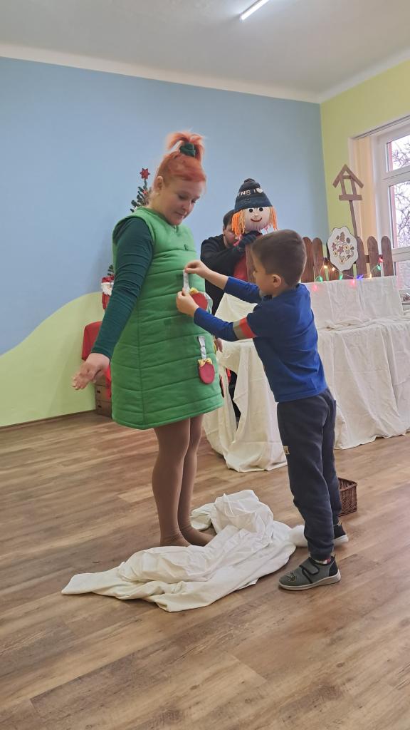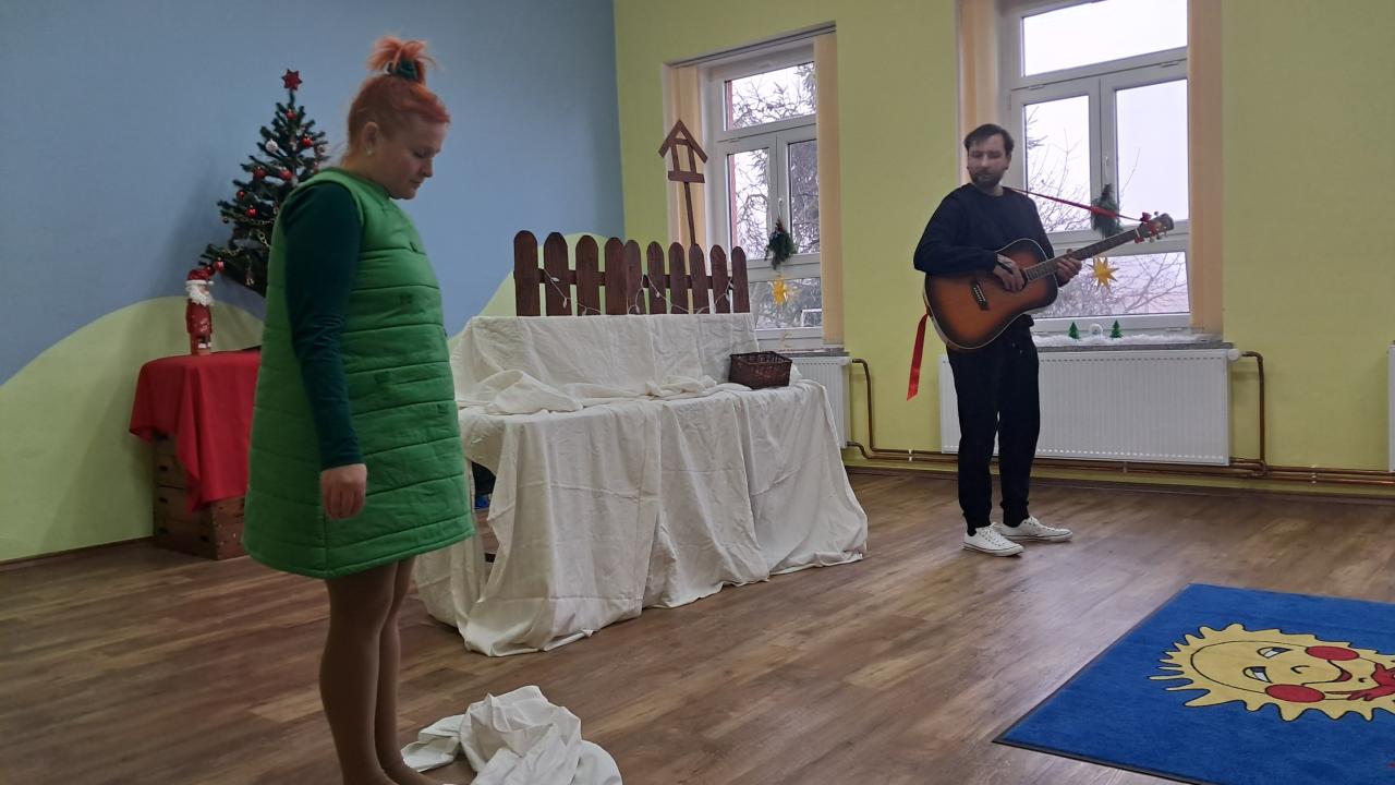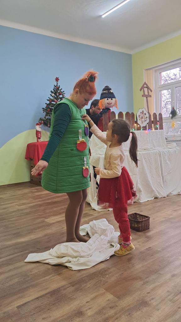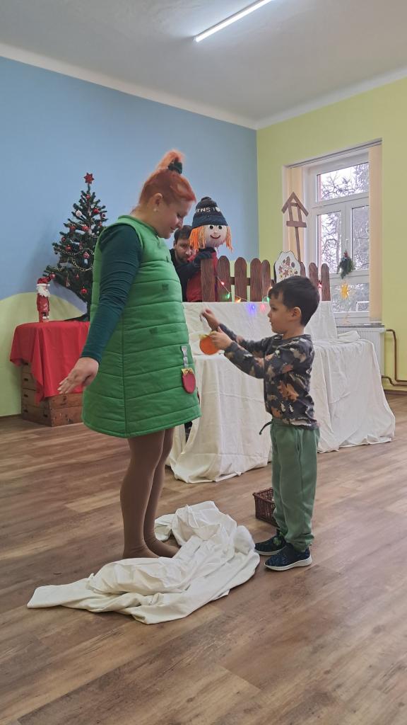 15.12. k nám přijelo divadlo. Přijely se na ně podívat i děti ze sousední školky. Pomohli jsme chlapečkovi Adámkovi ozdobit jedličku a připravit Vánoce. Moc se nám to líbilo.