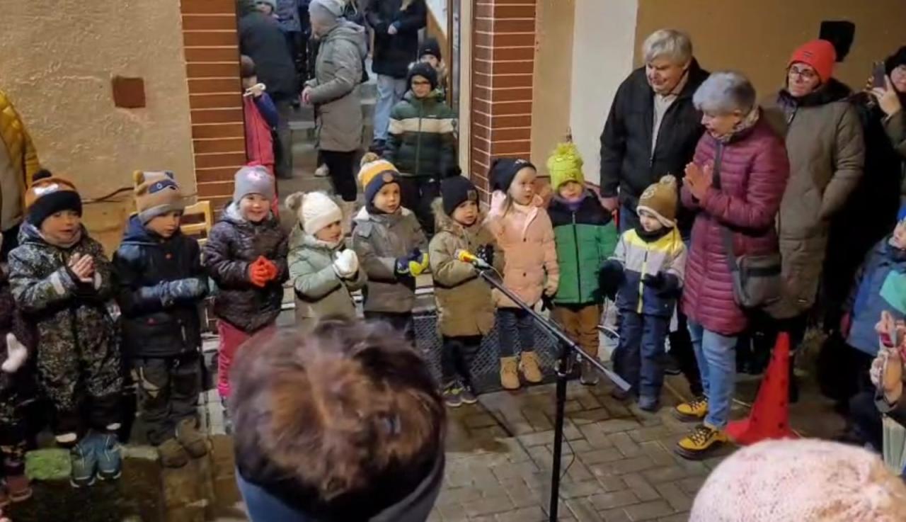 28.11. jsme pomohli rozsvítit vánoční stromeček před naší školkou.